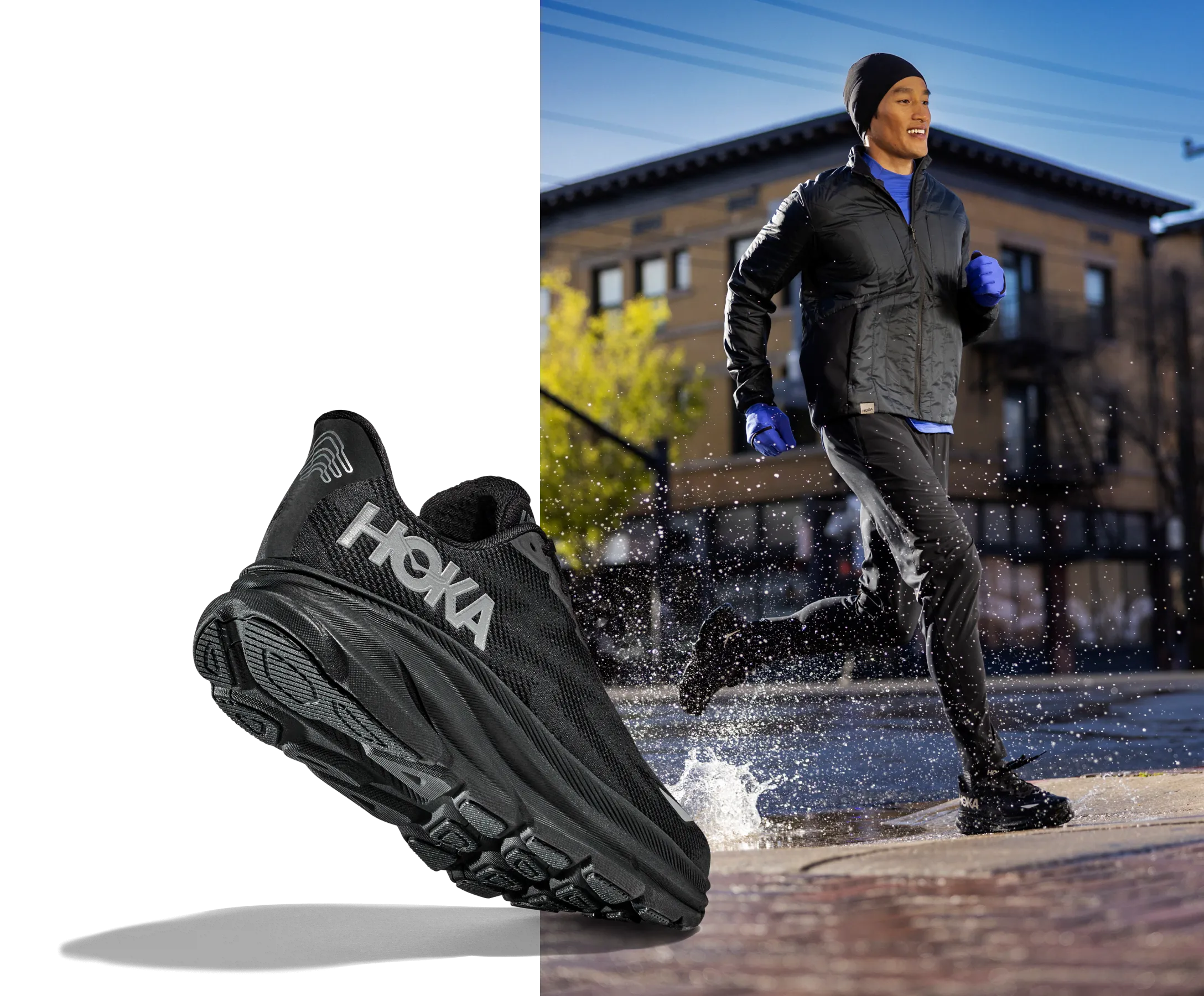 Empowering runners to log their miles – no matter the weather – our classic Clifton has been updated with GORE-TEX Invisible Fit and weather-ready traction pods. HOKA’s first-ever weatherproof road shoe, this splash-ready silhouette features 360-degree reflectivity and closed mesh construction for added protection. Designed to shine, even when the weather doesn’t, the Clifton 9 GTX proves no forecast is too fierce.