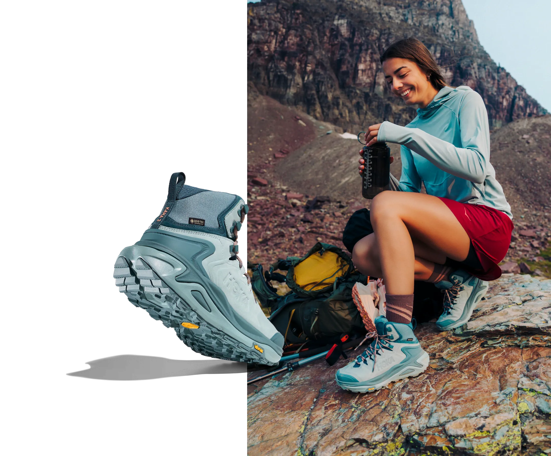 A long-haul adventure hiker that’s cushier and more durable than ever before, the Kaha returns in a sleek new package. Geared for day hikes and multi-day adventures, our cushy sockliner combats foot fatigue while a dual density sugarcane EVA midsole provides a bit more bounce than its predecessor. HOKA’s first-ever mid-cut hiker with GORE-TEX Invisible Fit, the Kaha 3 GTX features a durable toe cap, Achilles-friendly heel collar to mitigate pressure, and Vibram® Megagrip outsole for toothy traction on lose terrain.