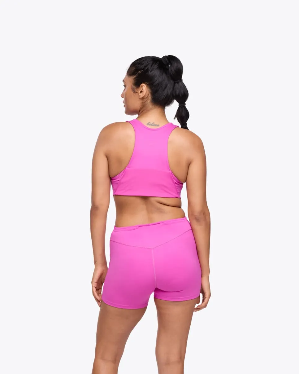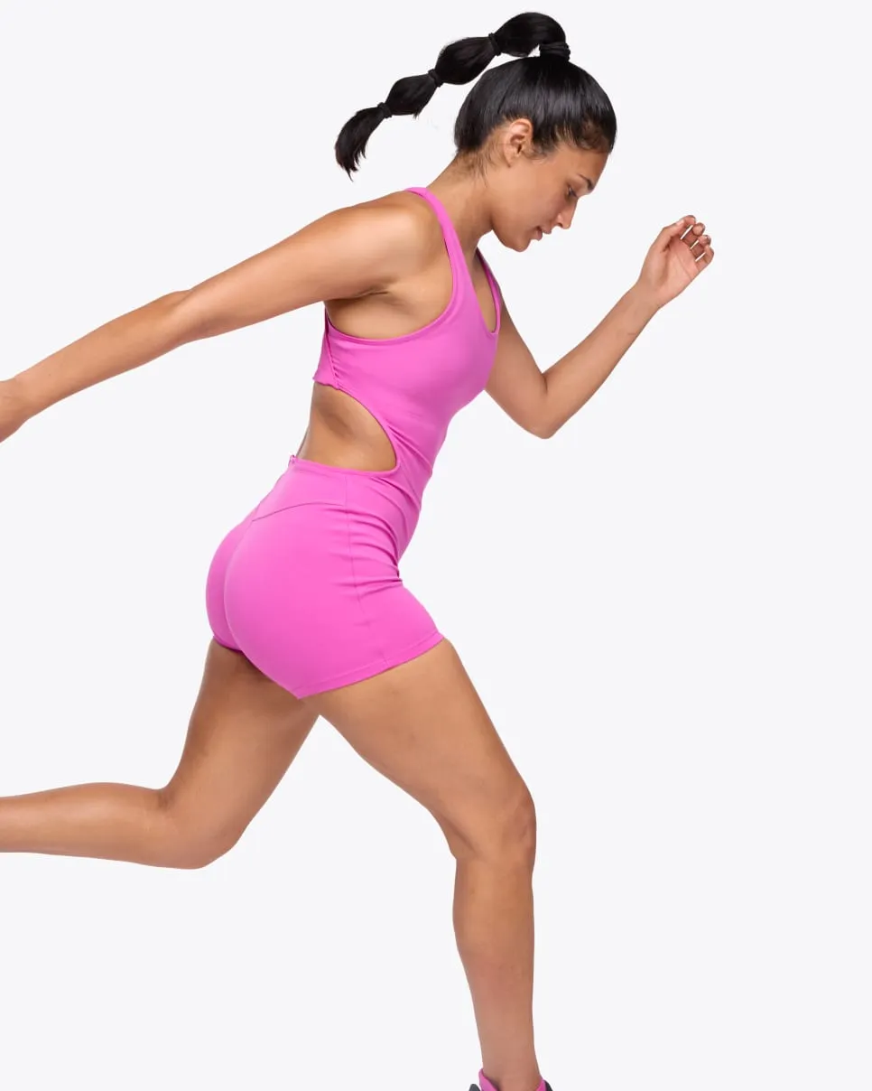 Designed to adapt to your body, however you move, the Women’s Playsuit introduces a bold new silhouette to the running arena. Pairing a supportive, sports-bra like upper with spandex short, this statement-making style is the perfect merger of fashion and function.