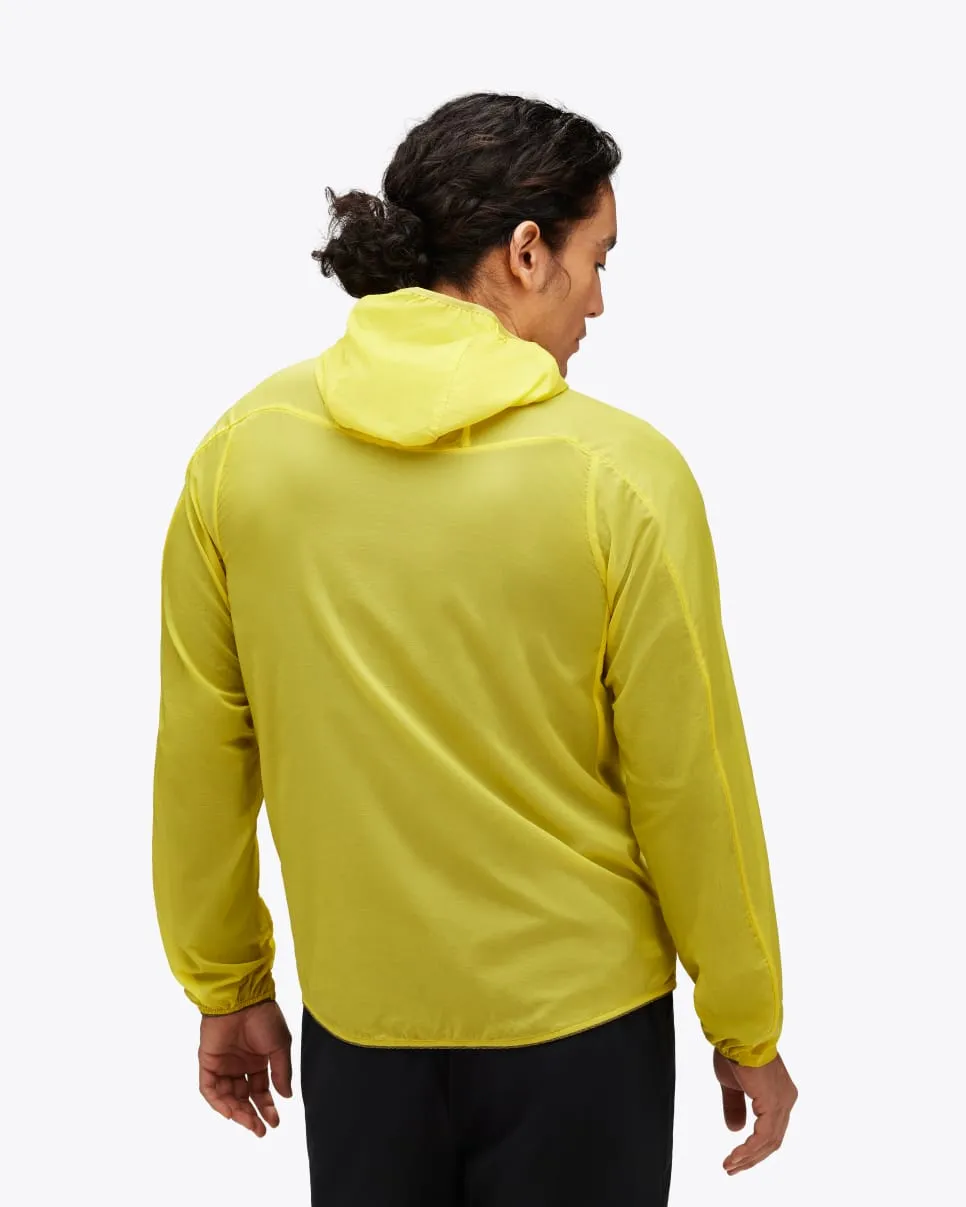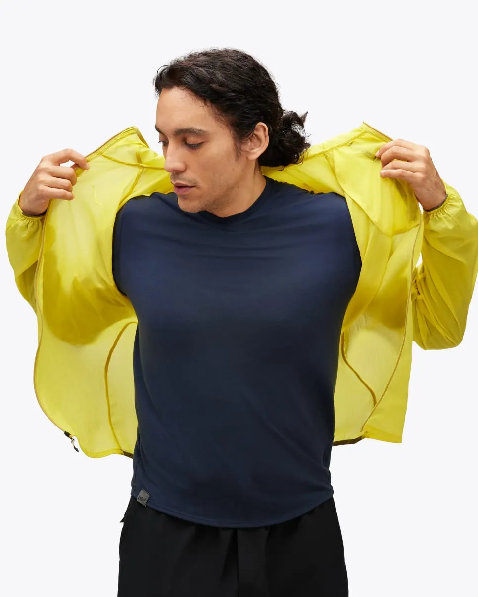 An ultralight windbreaker tailored for breezy weather and brisk temps, the Skyflow Jacket is your go-to on anything from 20-minute jogs to four-hour runs. Thoughtfully engineered from noise-free fabric and finished with a silicone-capped bungee cord for quick hood adjustments, this deceivingly quiet windbreaker tips the scales at 3.7oz and packs into a chest pocket for easy storage on the go. *Weight derived from a men’s size medium